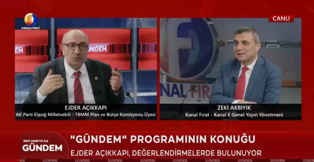 ELAZIĞ (AYIŞIĞI) AK Parti Elazığ Milletvekili Ejder Açıkkapı, CHP Elazığ Milletvekili Gürsel Erol’un son dönemdeki açıklamalarına ilişkin Kanal Fırat ‘ta Zeki Akbıyık’ın Gündem programına konuk olduğu programda kapsamlı bir değerlendirmede bulundu. Açıkkapı, Milletvekili Gürsel Erol’un söylemlerinin yapıcı siyasetten uzak olduğunu ifade ederek, kamuoyu önünde algı oluşturulmaya çalışıldığını savundu.