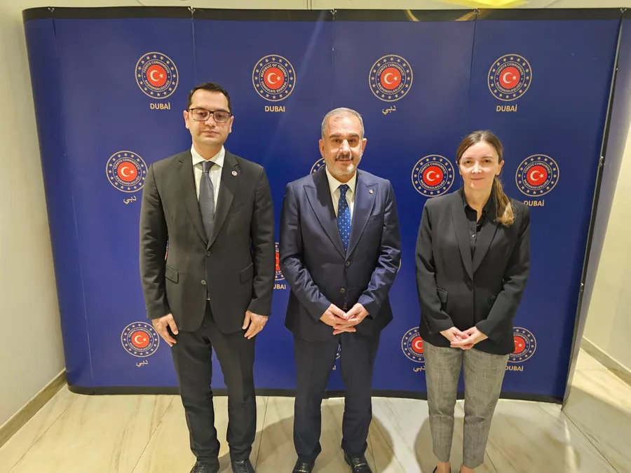 Heyeti ağırlayan Dubai Ticaret Ataşeleri Beste Öztürk ve Hacı Hasan Kaygısız, Dubai’nin yatırım ortamı, düşük vergi avantajları ve kolay şirket kurulum süreçleriyle Türk iş dünyası için önemli fırsatlar sunduğunu belirtti.