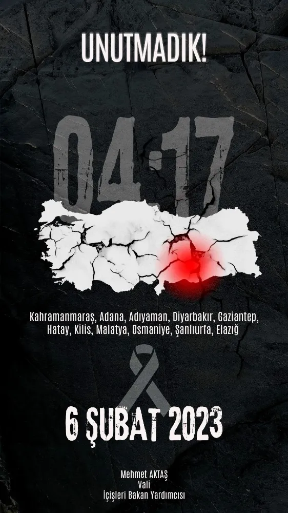 ANKARA (AYIŞIĞI) – İçişleri Bakan Yardımcısı Mehmet Aktaş, 6 Şubat 2023’te meydana gelen ve “Asrın Felaketi” olarak nitelendirilen depremlerin üçüncü yılı dolayısıyla bir mesaj yayımladı.