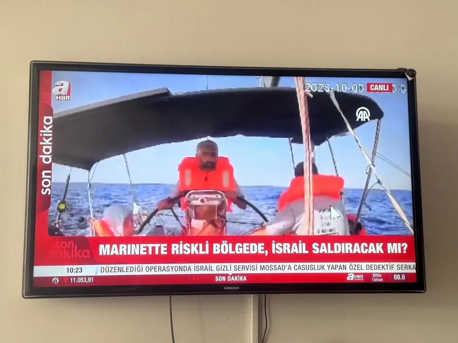 Görüntülerde İsrail gemisinin Mariret’e hızla yaklaştığı anlar yer alırken, gemide bulunan Türk aktivist Emine Hanım’ın son anda canlı bağlantıya geçtiği görüldü. Aktivistlerin, müdahale sırasında telefonlarını denize atarak fişlenmemeye çalıştıkları aktarıldı.