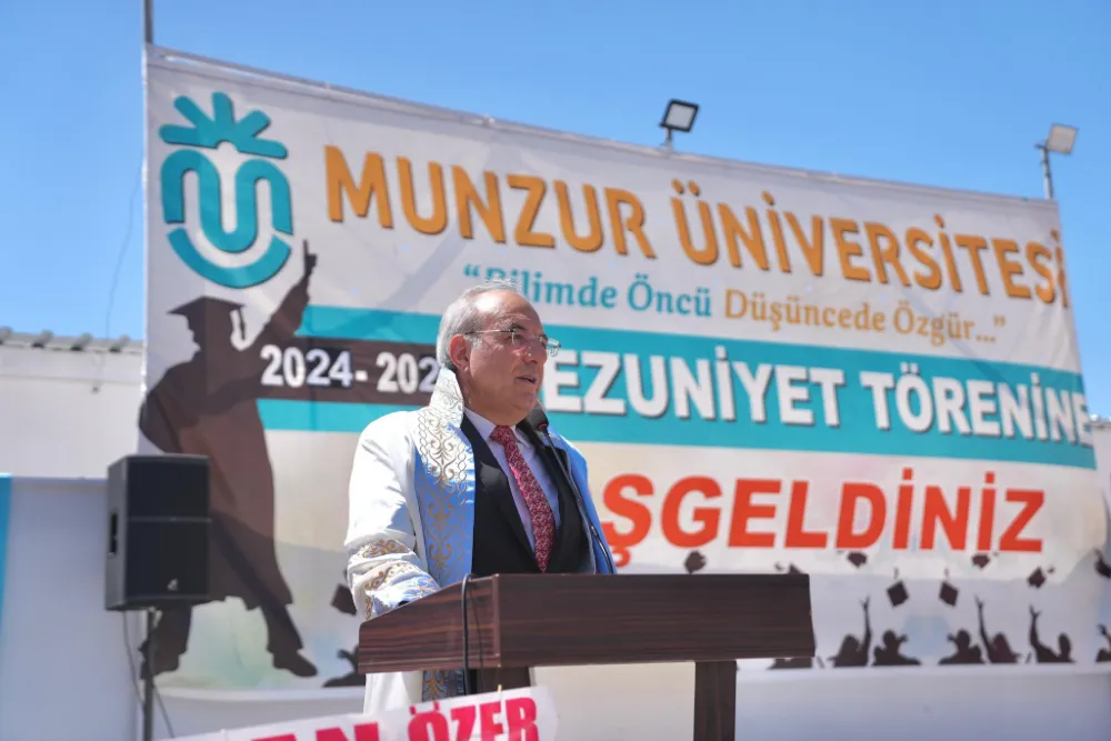 Prof. Dr. Kenan Peker, törende yaptığı konuşmada, üniversitenin eğitimdeki başarısının yanı sıra öğrencilerin sosyal ve kültürel gelişimine verdiği önemi vurguladı. “Munzur Üniversitesi olarak gençlerimizi sadece akademik bilgiyle donatmakla kalmıyor, aynı zamanda onları hayata hazırlıyoruz.” diyen Rektör Peker, mezun öğrencilerin ülkenin geleceğine katkı sağlayacak donanımla mezun olduklarının altını çizdi.