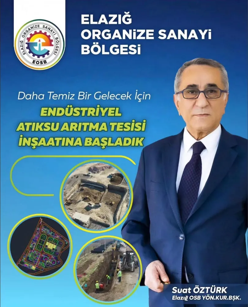 ELAZIĞ (AYIŞIĞI) Elazığ Organize Sanayi Bölgesi, çevreye duyarlı üretim hedefleri doğrultusunda önemli bir projeyi daha hayata geçiriyor. OSB Yönetim Kurulu Başkanı Suat Öztürk, sanayi kaynaklı çevresel etkileri en aza indirmek amacıyla endüstriyel atık su arıtma tesisi inşaatına başlandığını kamuoyuyla paylaştı.