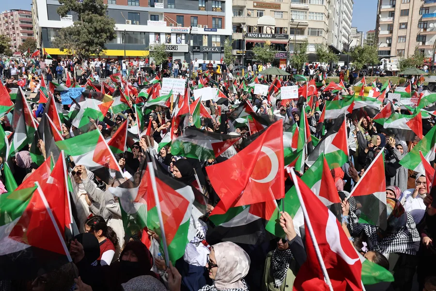 Cumhuriyet Meydanı’nda sona eren yürüyüşün ardından yapılan mitingde, Filistin halkına destek mesajları verildi ve İsrail’in saldırıları kınandı. Katılımcılar, ellerini semaya kaldırarak Gazze’de hayatını kaybeden siviller için dualar etti.